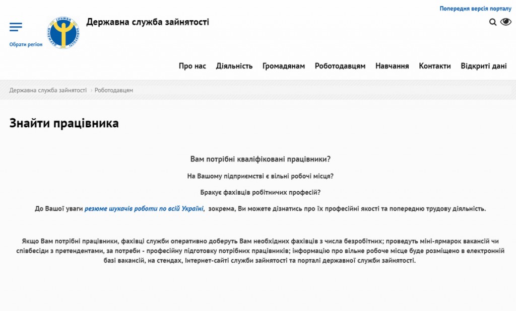 На веб – порталі «Єдине соціальне середовище зайнятості» Державної служби зайнятості запроваджено анкетування роботодавців стосовно потреби в працівниках на наступний 2019 рік.