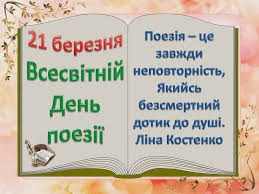 День поезії весь світ відзначає світлого березневого дня, коли земля вже прокинулася від зимової скутості, весна набирає силу, а душа проситься в політ. 21 березня День поезії відзначається невипадково. Адже це ще і період рівнодення, символічного оновлення природи і творчого злету людського духу.