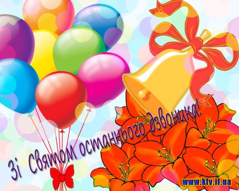 А для вас, випускники цей дзвоник справді є останній. Залишаються позаду ваші шкільні роки – найбільш безтурботна та щаслива пора життя, сповнена мрій та сміливих планів. Ви вирушаєте у самостійне доросле життя. Бажаю щоб цей шлях був щасливий, сповнений гарними подіями і здобутками. Вірю, що Ви реалізуєте власні здібності, таланти, побудуєте власну успішну долю, будете гідними творцями свого життя і справжніми патріотами своєї країни! Бажаю вам впевненості у власних силах, невичерпного завзяття та здійснення всіх ваших мрій.